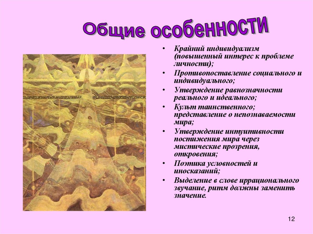 • отказ от реальности в поэзии;• склонность к сложному