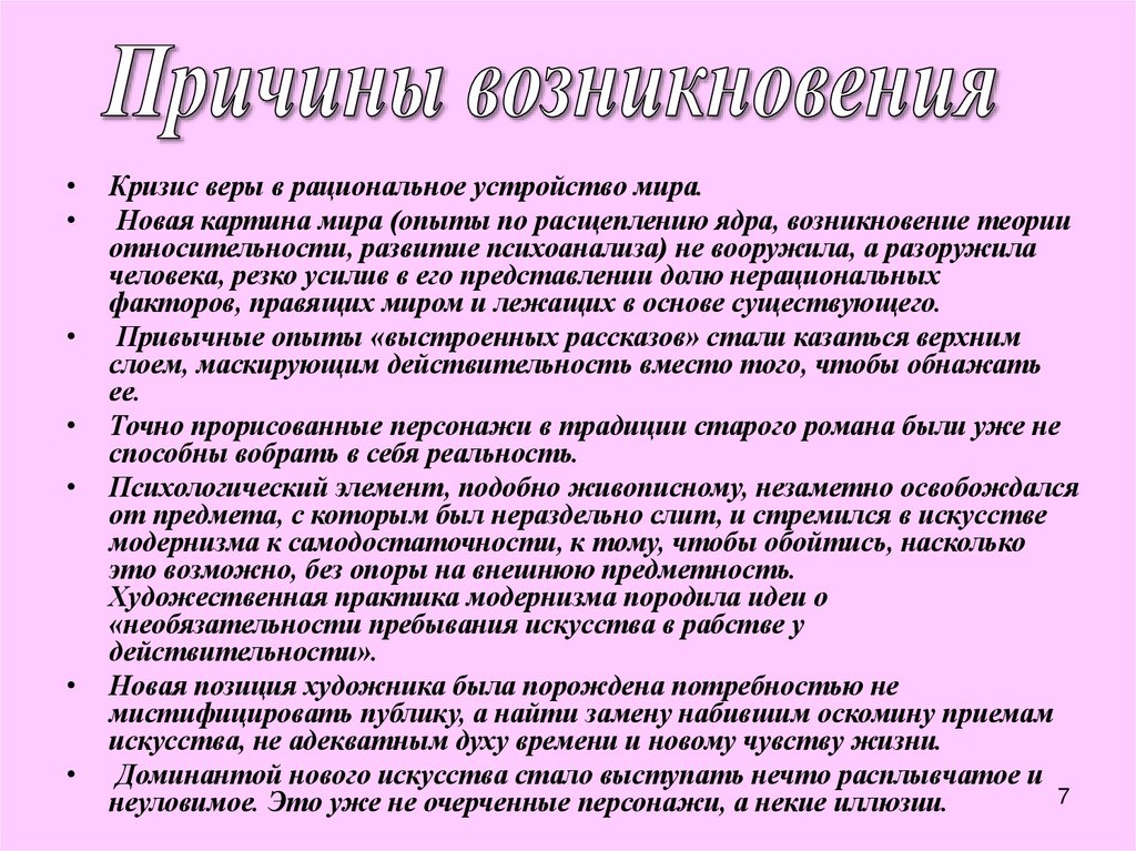 Кризис веры в рациональное устройство мира.