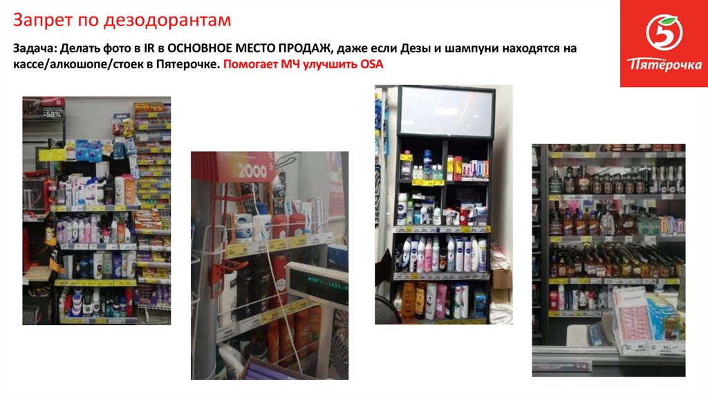 OSA (наличие товара на полке):1. Проверить наличие товара по МАТРИЦЕ. В помощь анкета Матрица OSA