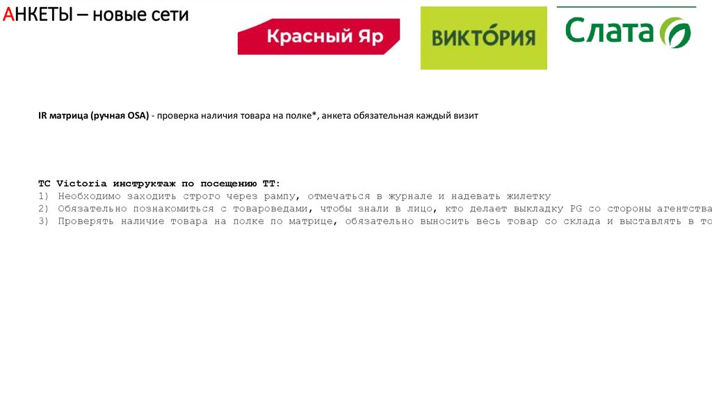 ТС Victoria инструктаж по посещению ТТ:
