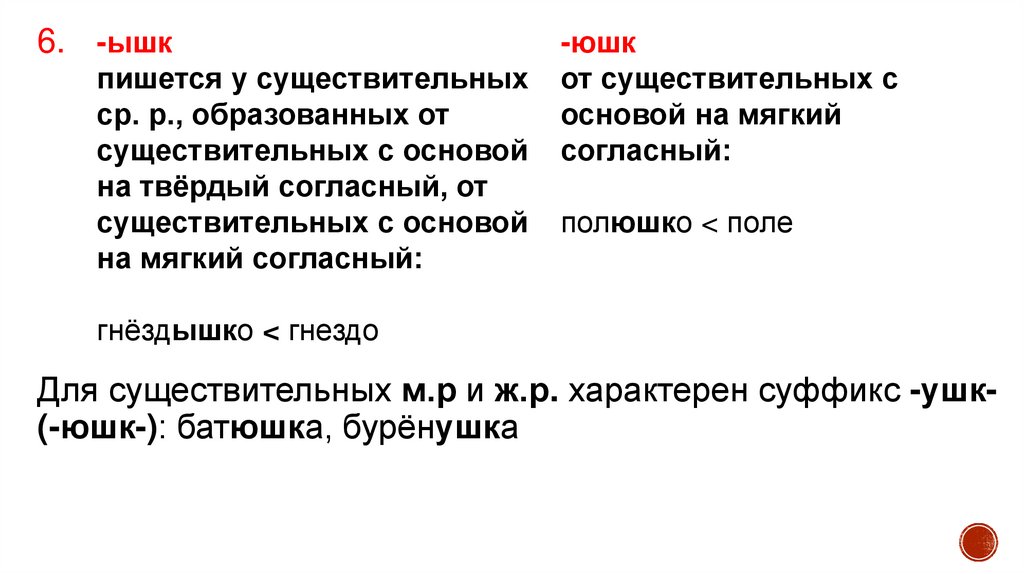 2. Сущ. с суффиксами -ушк-, -юшк-, -ышк-, -ишк- в И.п. ед.ч. имеют
