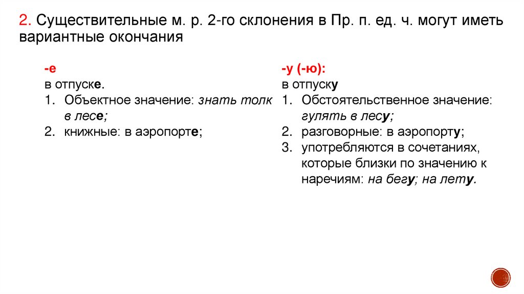 2. Существительные м. р. 2-го склонения в Пр. п. ед. ч. могут иметьвариантные окончания