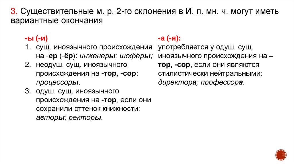 3. Существительные м. р. 2-го склонения в И. п. мн. ч. могут иметьвариантные окончания