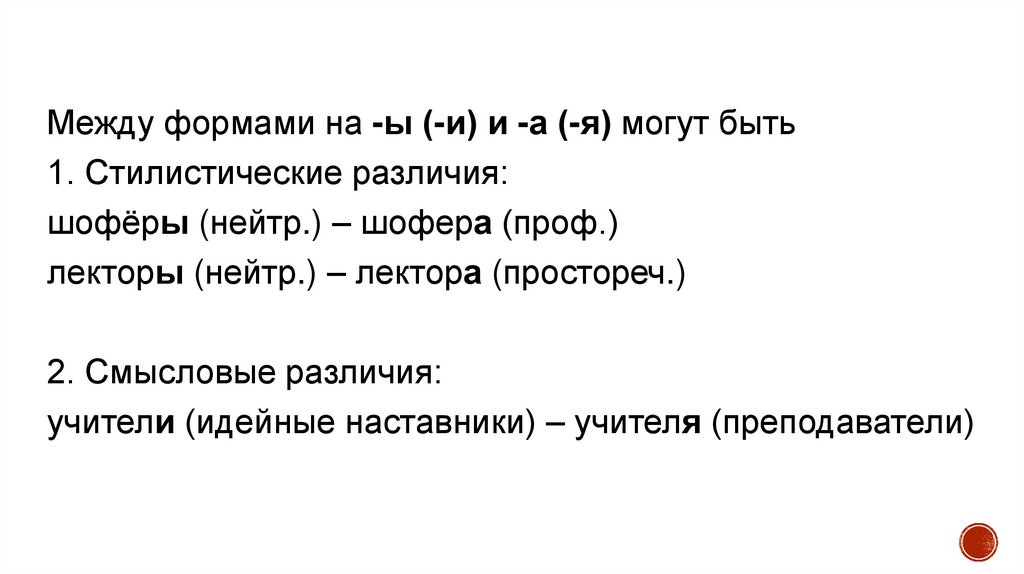Между формами на -ы (-и) и -а (-я) могут быть1. Стилистические различия: