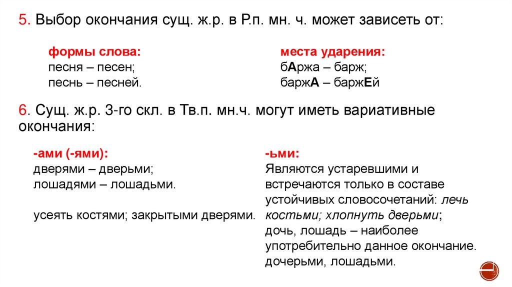 6. Сущ. ж.р. 3-го скл. в Тв.п. мн.ч. могут иметь вариативные