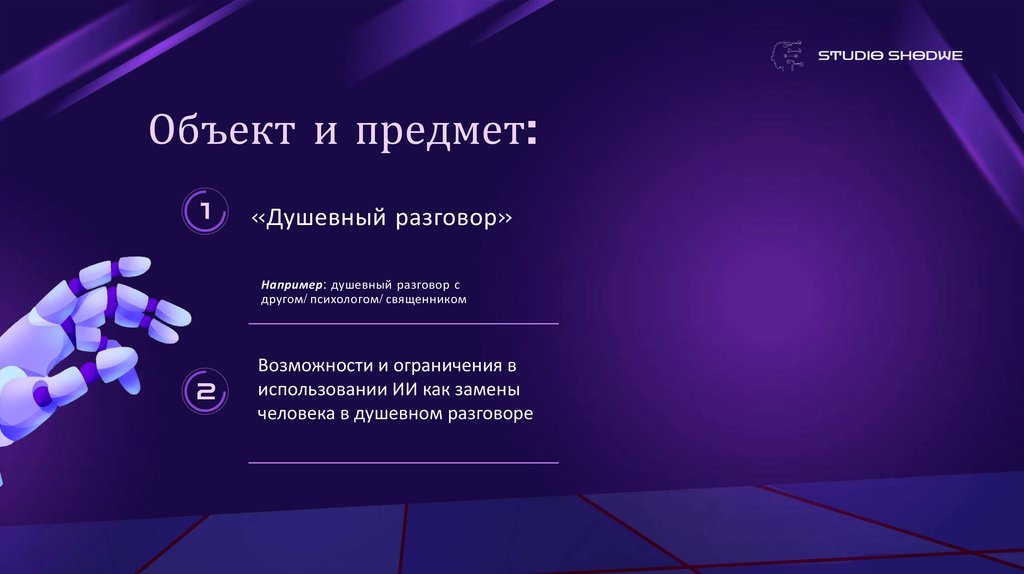 STUDIO SHODWEОбъект и предмет: