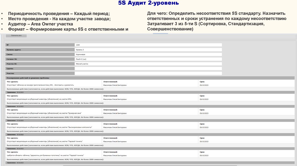 5S Аудит 2-уровеньПериодичность проведения – Каждый период;