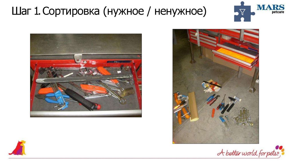 Цель – отсортировать предметы и материалы, находящиеся на рабочемместе и убрать ненужные.