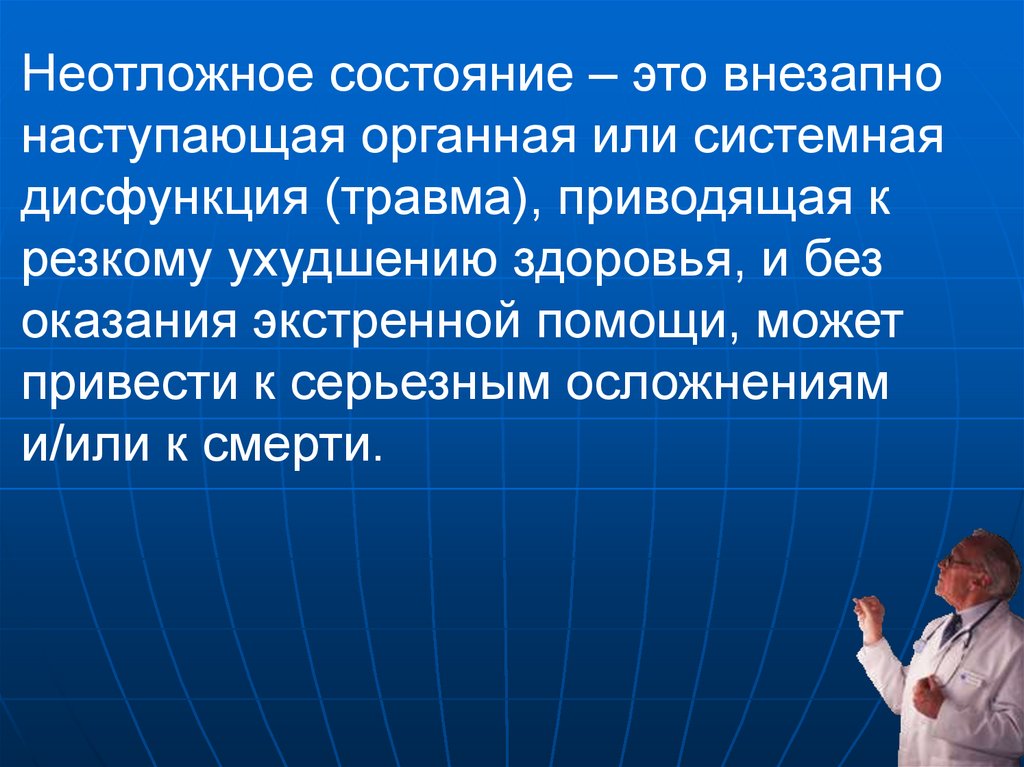 Неотложное состояние – это внезапнонаступающая органная или системная