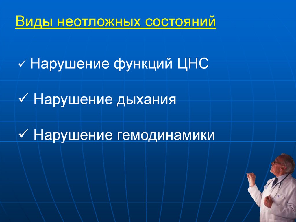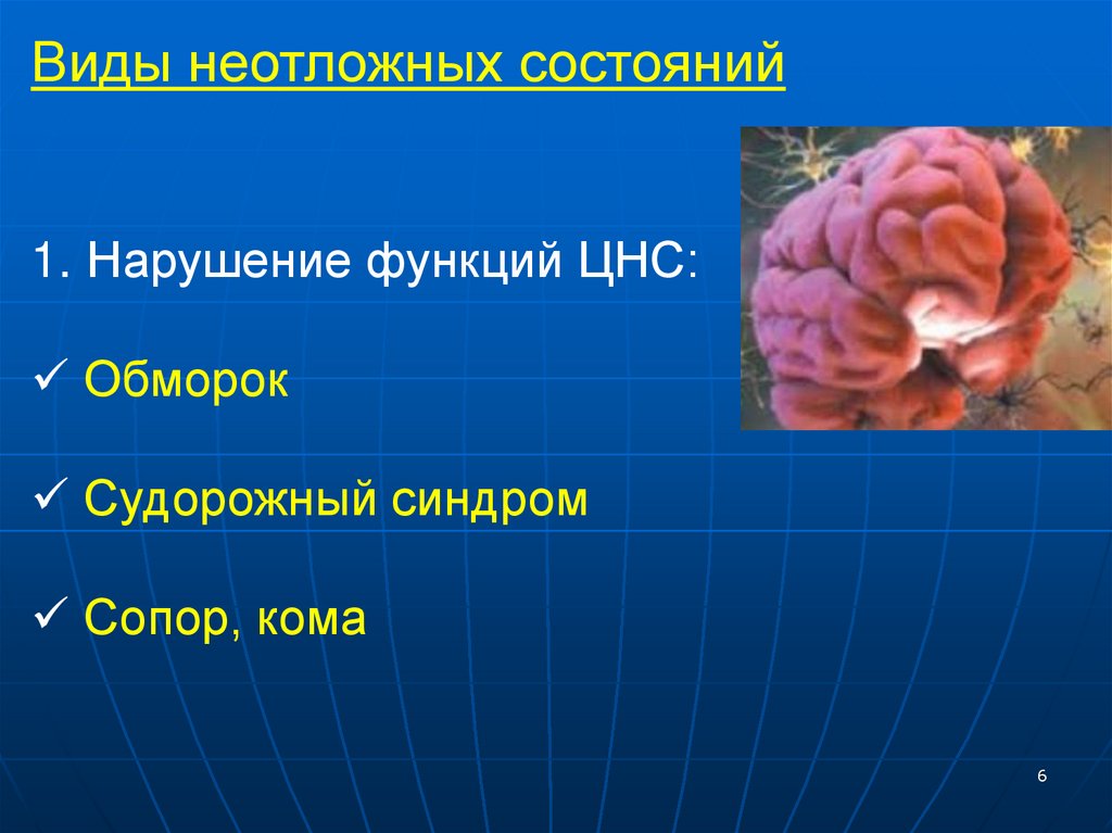 Виды неотложных состояний1. Нарушение функций ЦНС:
