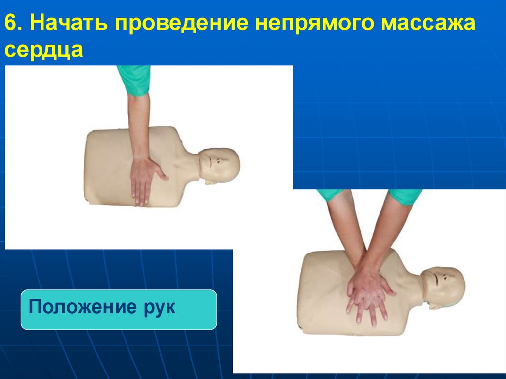 Правила проведения непрямого массажа сердцаЧастота компрессий: 100 – 120 в минуту;