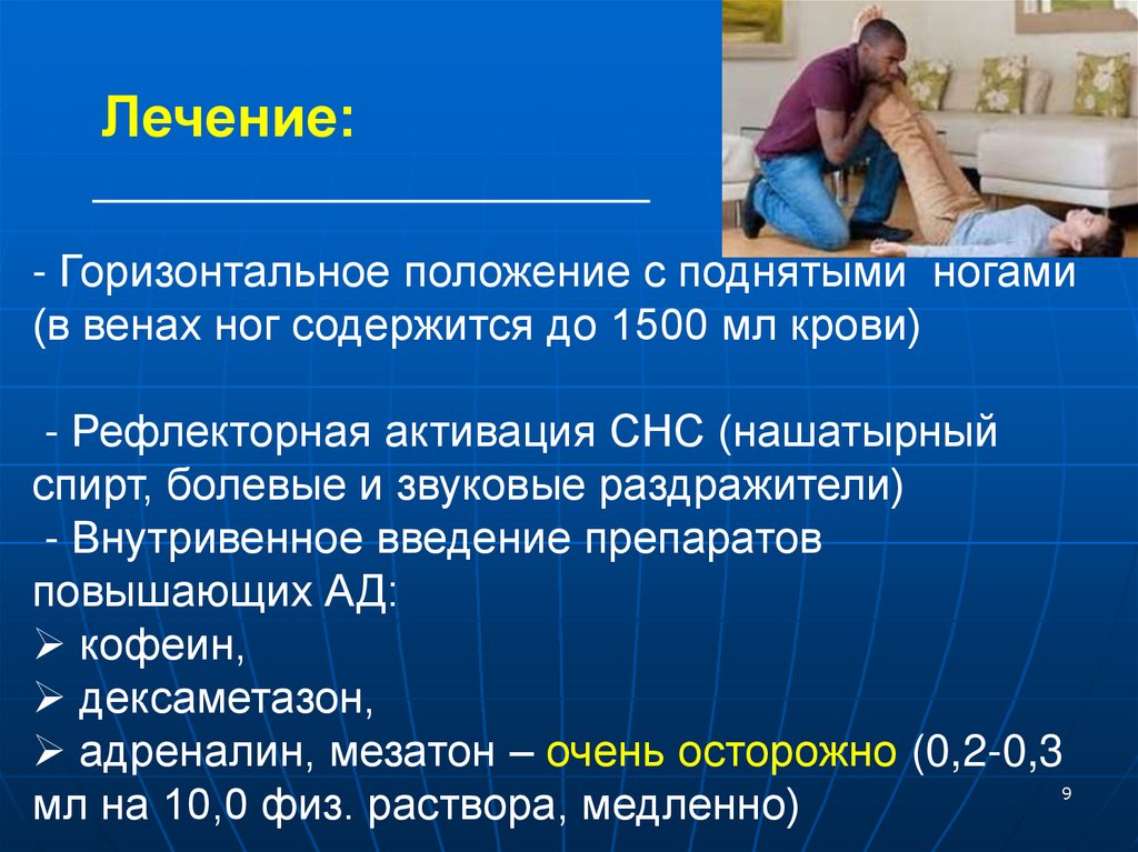 Лечение:- Горизонтальное положение с поднятыми ногами