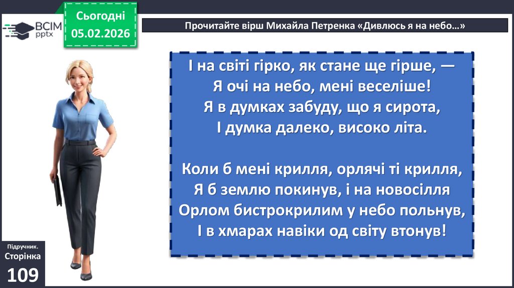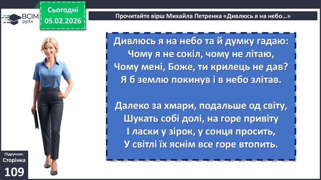 • Доведіть, що вірш М. Петренка «Дивлюсь я