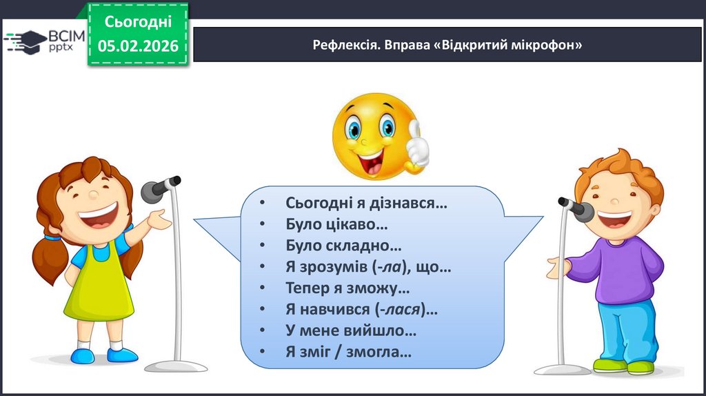 Рефлексія. Вправа «Відкритий мікрофон»