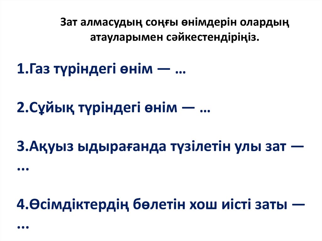 1.Газ түріндегі өнім — …