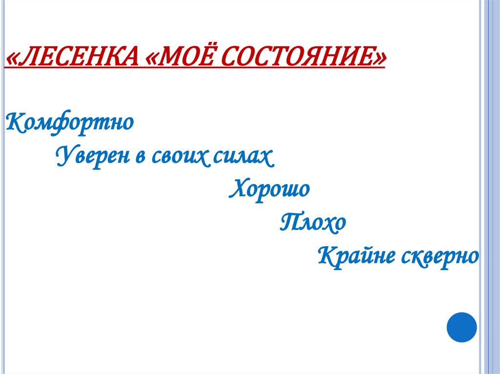 «ЛЕСЕНКА «МОЁ СОСТОЯНИЕ»Комфортно