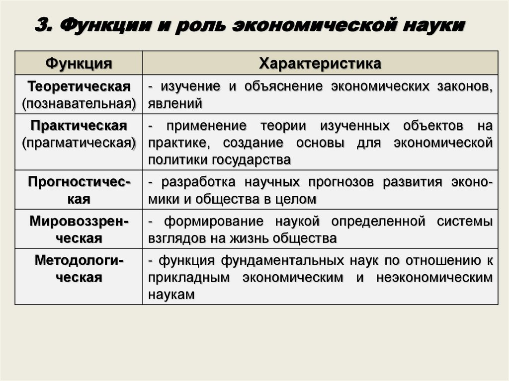 3. Функции и роль экономической наукиФункция