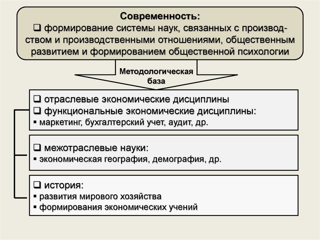 Современность:формирование системы наук, связанных с производством и производственными отношениями, общественным