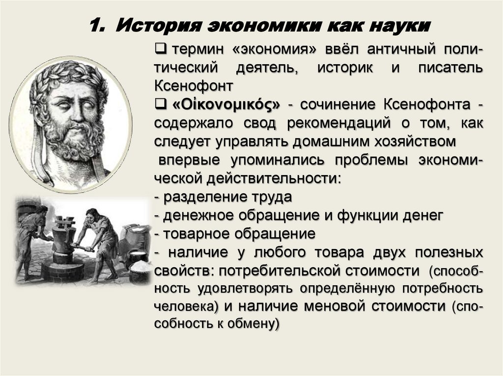 1. История экономики как наукитермин «экономия» ввёл античный политический деятель, историк и писатель