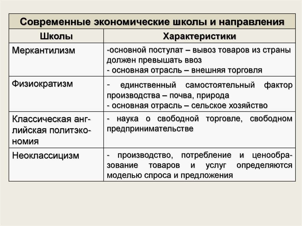 Современные экономические школы и направленияШколы