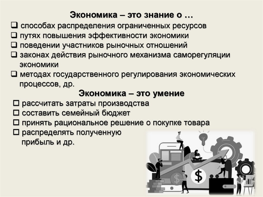 Экономика – это знание о …способах распределения ограниченных ресурсов