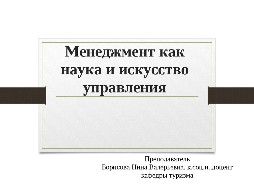 Менеджмент какнаука и искусство