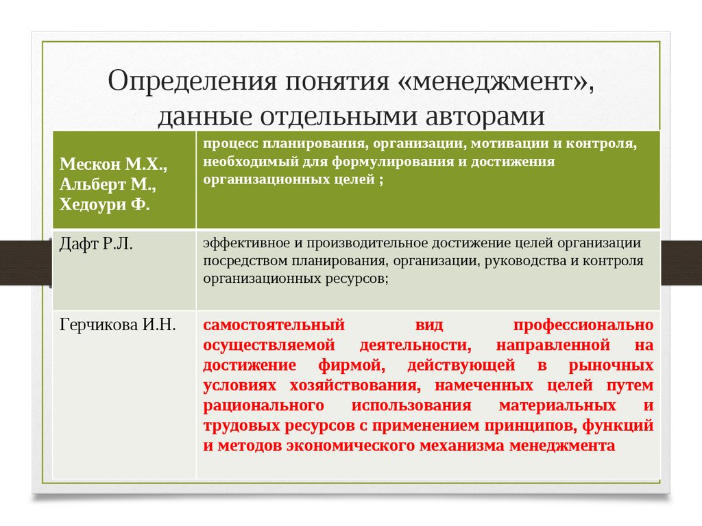 Определения понятия «менеджмент»,данные отдельными авторами
