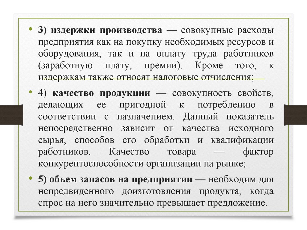 цены на ресурсы. Таким образом, поддержание