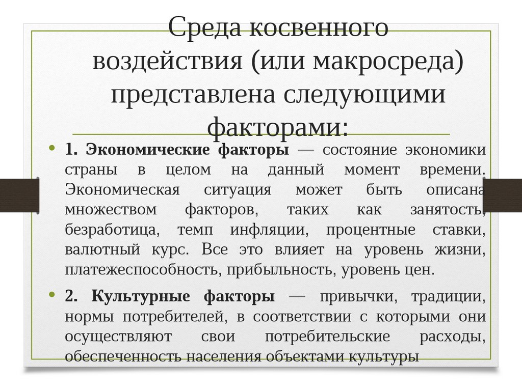 • 1. Экономические факторы — состояние экономики