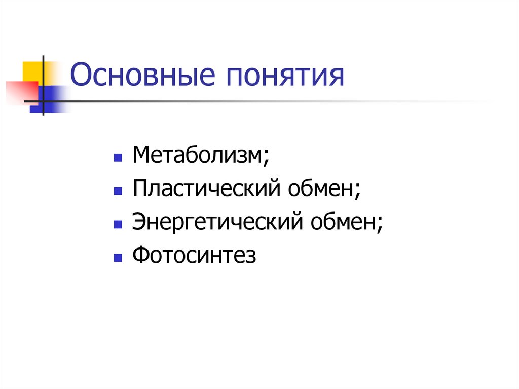 Основные понятияМетаболизм;