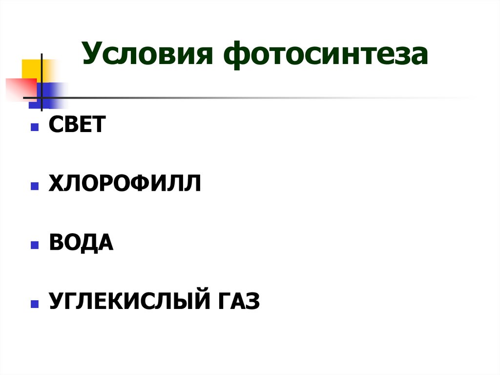 Условия фотосинтезаСВЕТ