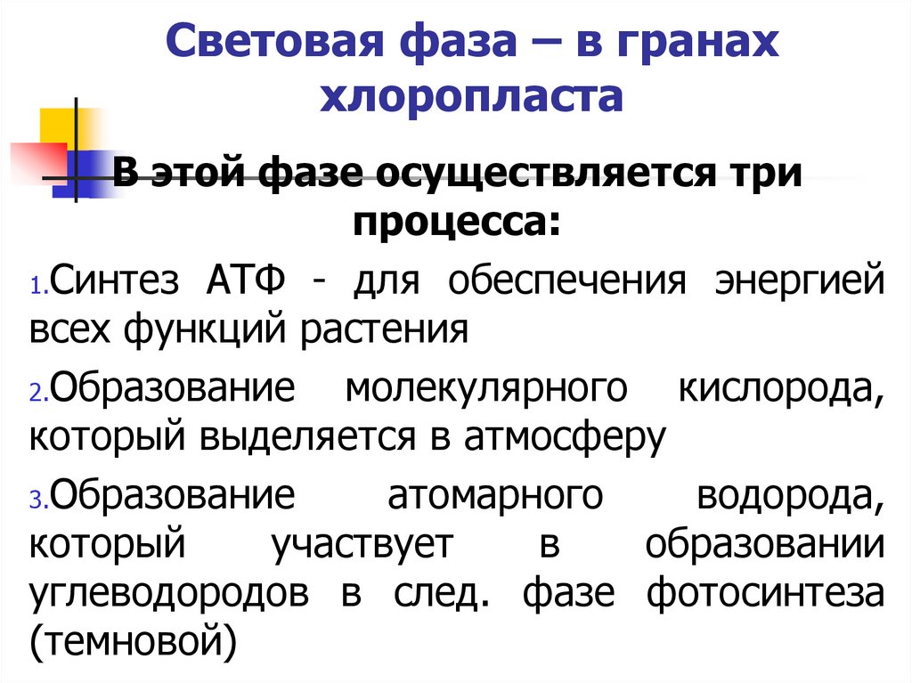 Световая фаза – в гранаххлоропласта