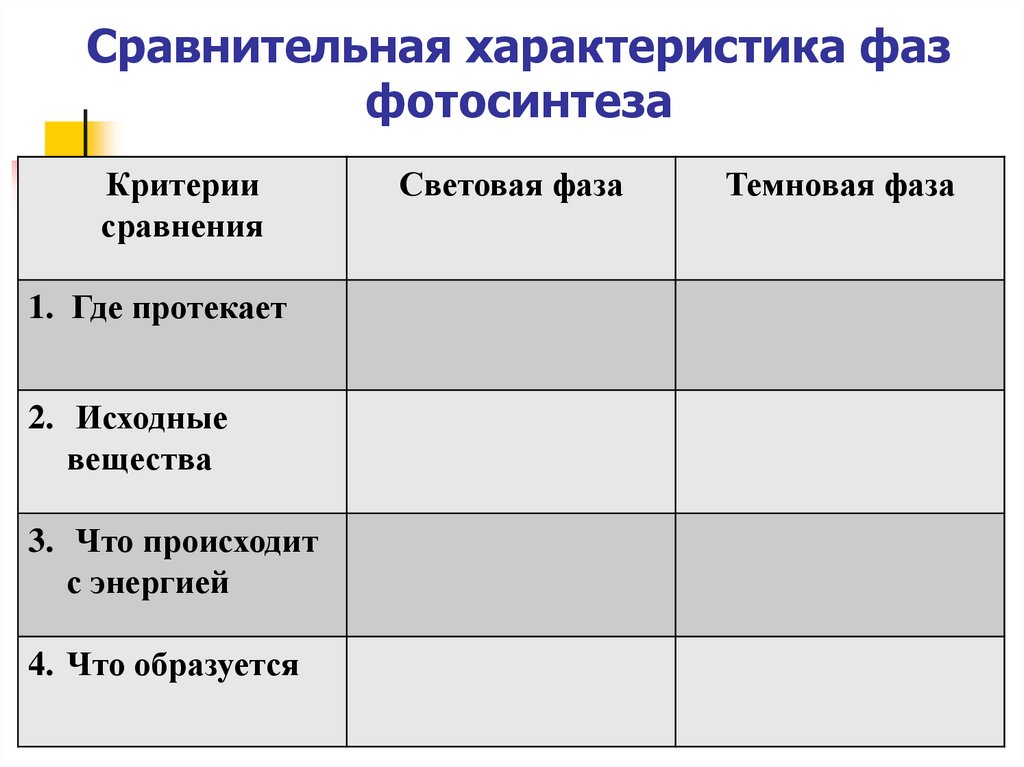 Сравнительная характеристика фазфотосинтеза