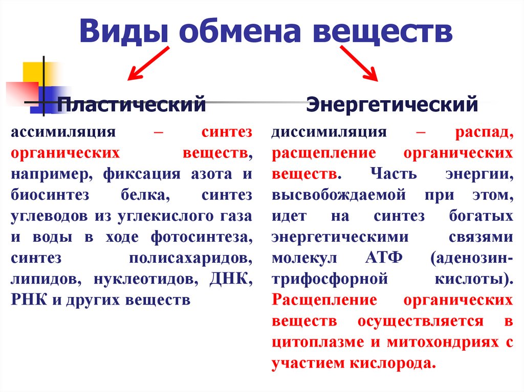 Виды обмена веществПластический
