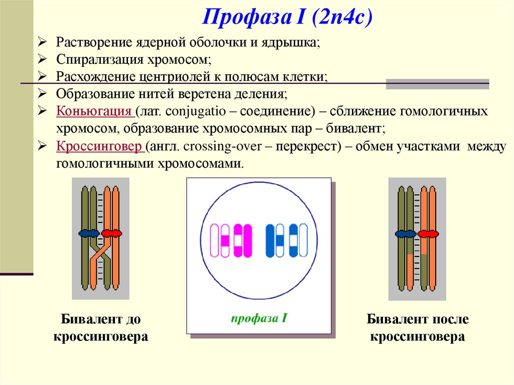 Профаза I (2n4c)Растворение ядерной оболочки и ядрышка;