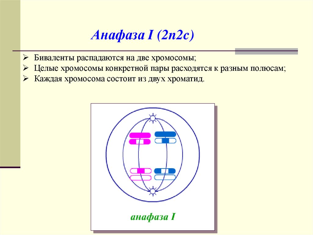 Анафаза I (2n2c)Биваленты распадаются на две хромосомы;