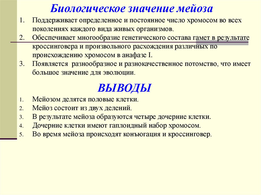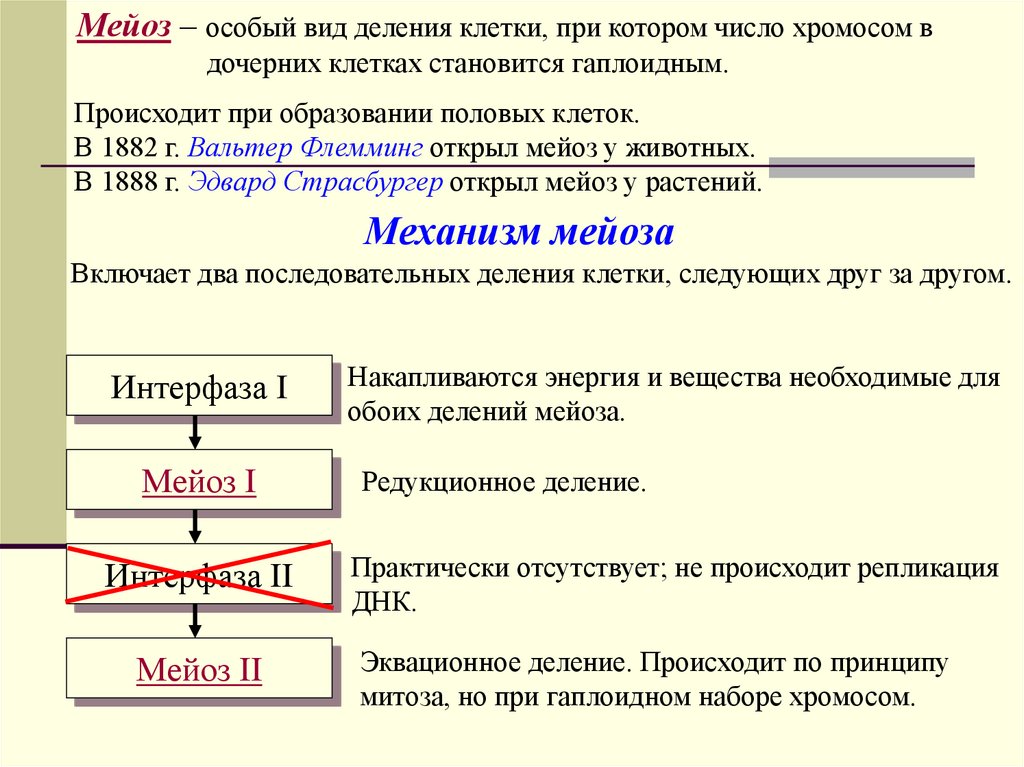 Мейоз – особый вид деления клетки, при котором число хромосом вдочерних клетках становится гаплоидным.