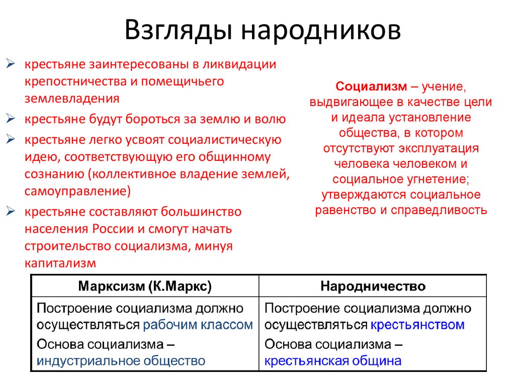 Взгляды народниковкрестьяне заинтересованы в ликвидации
