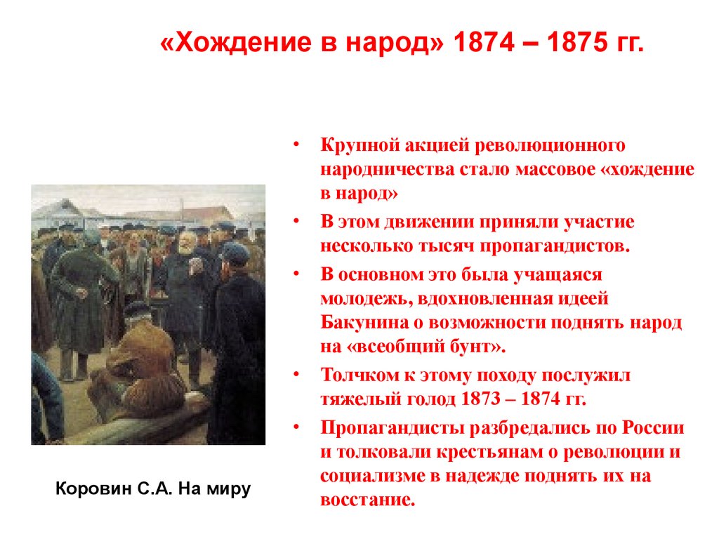 «Хождение в народ» 1874 – 1875 гг.Коровин С.А. На миру