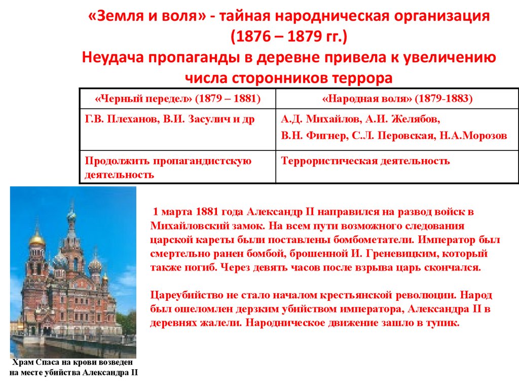 «Земля и воля» - тайная народническая организация(1876 – 1879 гг.)
