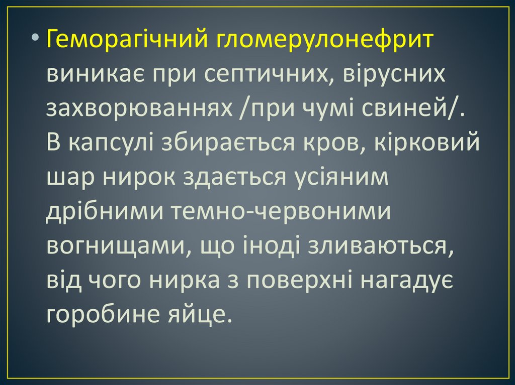 • Геморагічний гломерулонефритвиникає при септичних, вірусних