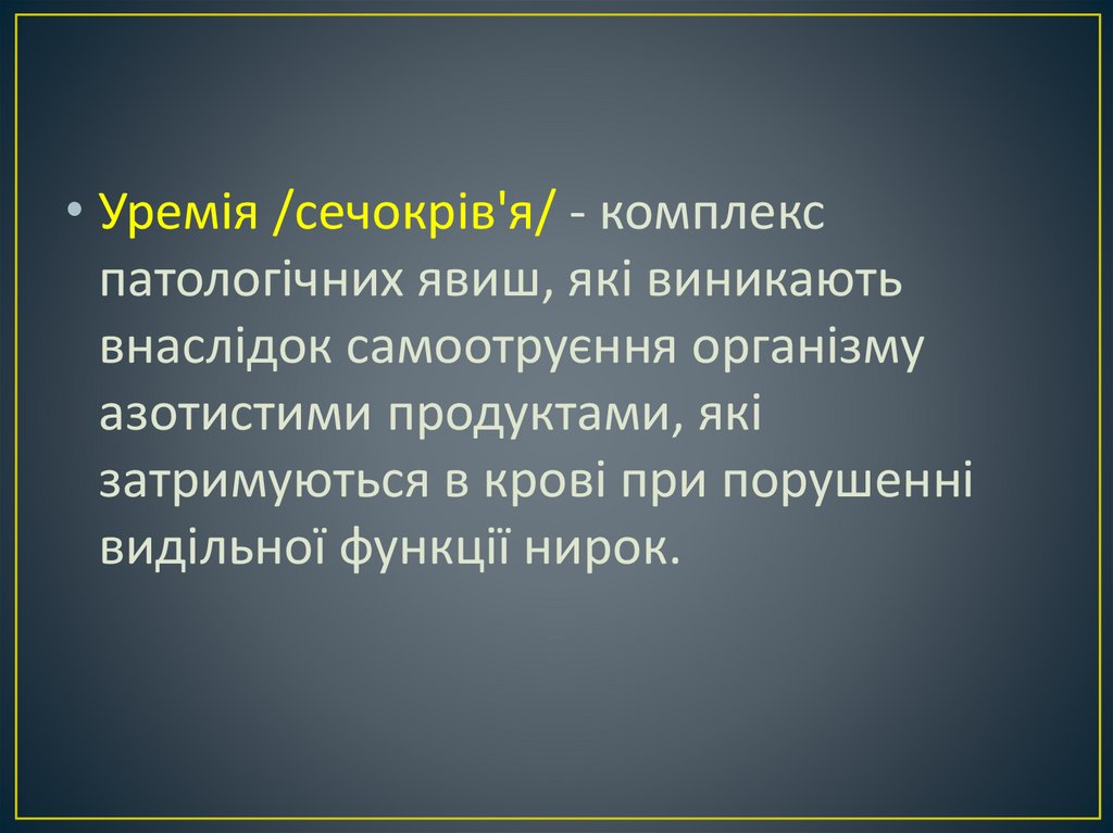 • Уремія /сечокрів'я/ - комплекспатологічних явиш, які виникають