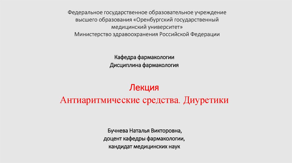 Антиаритмические средства. Диуретики
