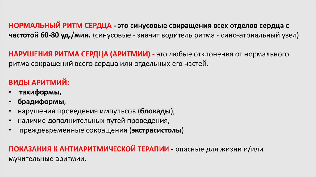 НАРУШЕНИЯ РИТМА СЕРДЦА (АРИТМИИ) - это любые отклонения от нормального