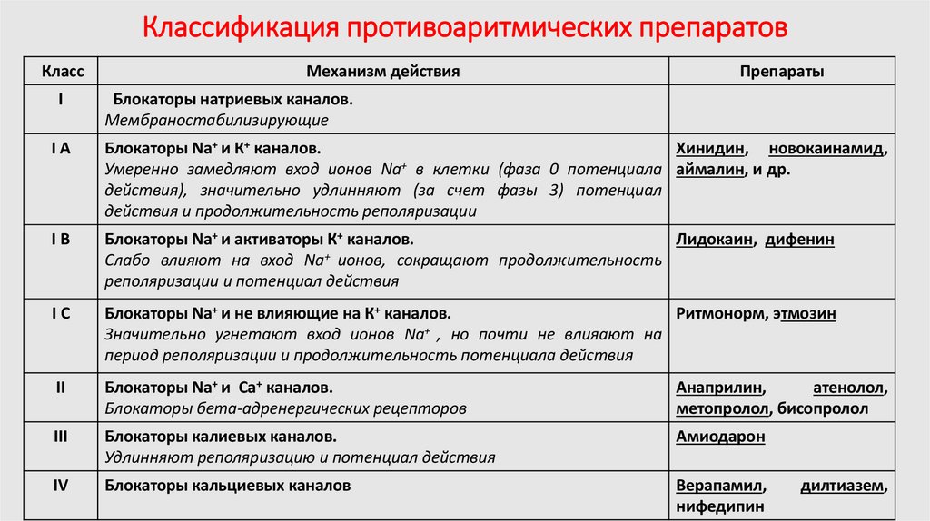 Классификация противоаритмических препаратовКласс