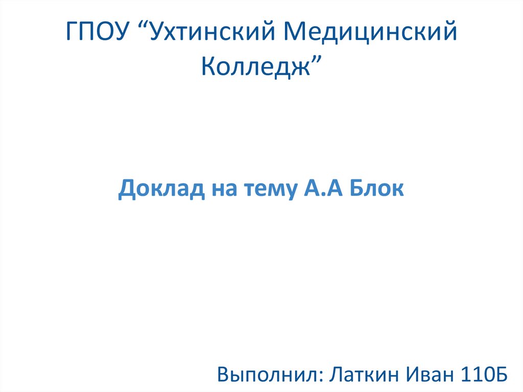 Доклад на тему А.А Блок