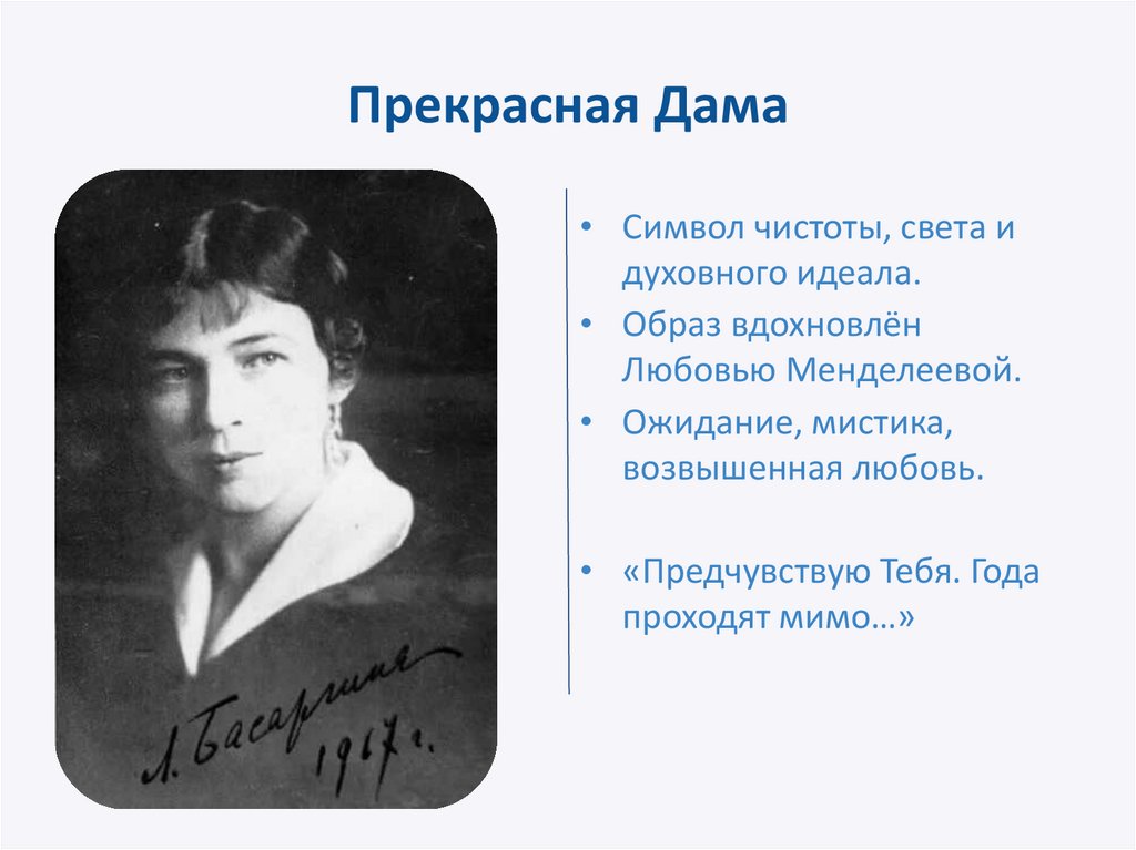 Прекрасная Дама• Символ чистоты, света и