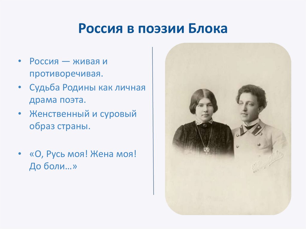 Россия в поэзии Блока• Россия — живая и