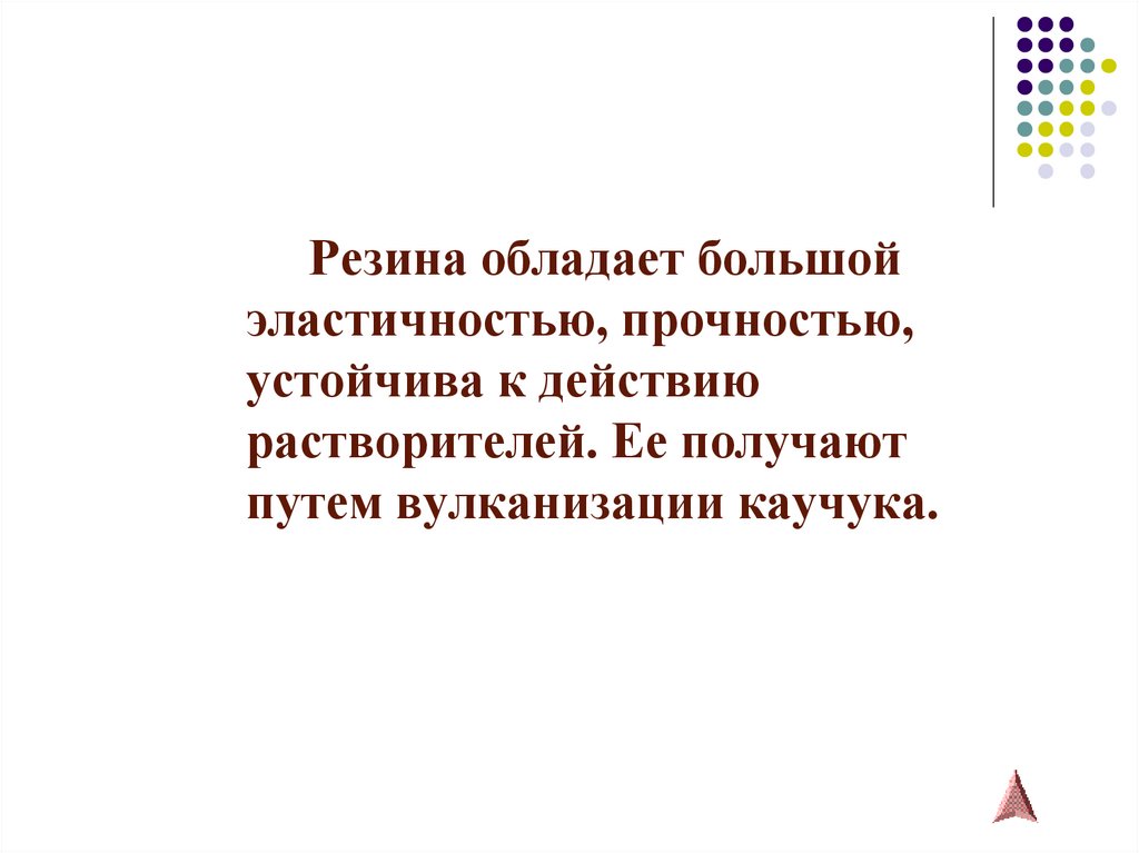 Резина обладает большойэластичностью, прочностью,