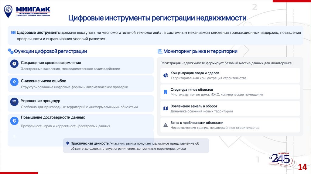 инфраструктурой; повышение прозрачности оборота недвижимости